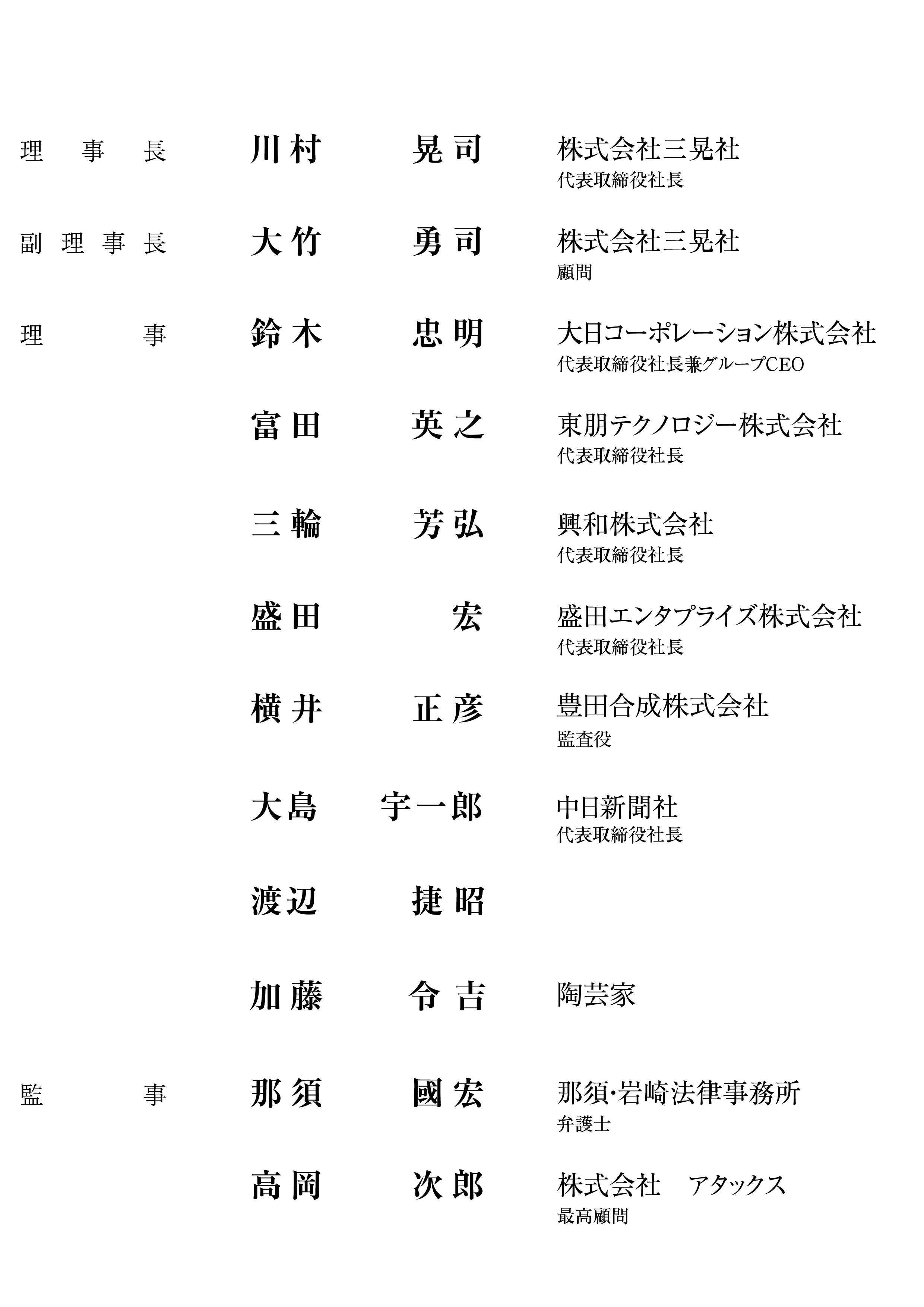小原カントリークラブの理事一覧です。